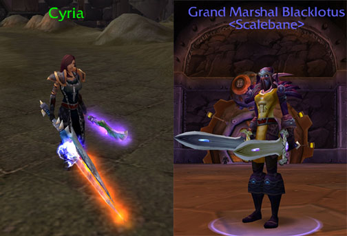 It gives me great pleasure to announce amazing achievements of these two Rogues. Blacklotus reached the highest rank possible in pvp - Grand Marshal. In the same week Cyria acquired the legendary sword Thunderfury, Blessed Blade of the Windseeker. Congratulations to both of you!